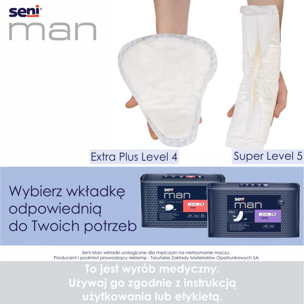 - najmniejsza w linii Seni Man “trójkątna” anatomicznie ukształtowana wkładka urologiczna